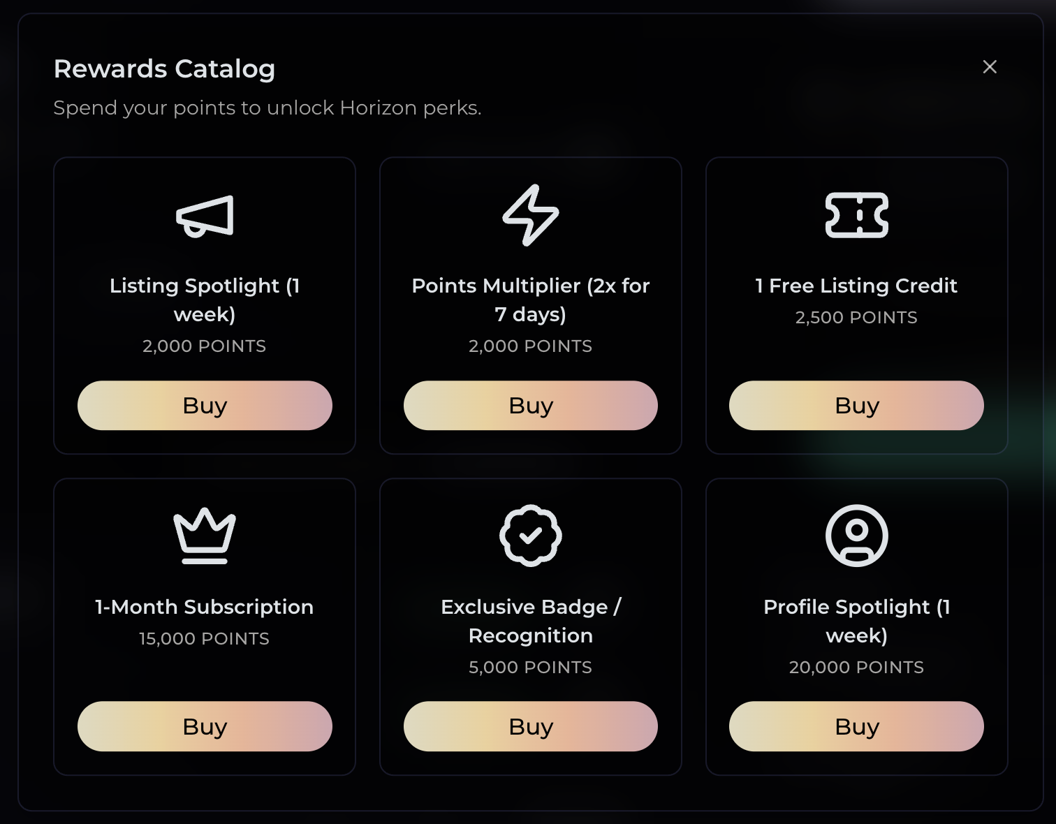 Earn points for every action on Horizon Market